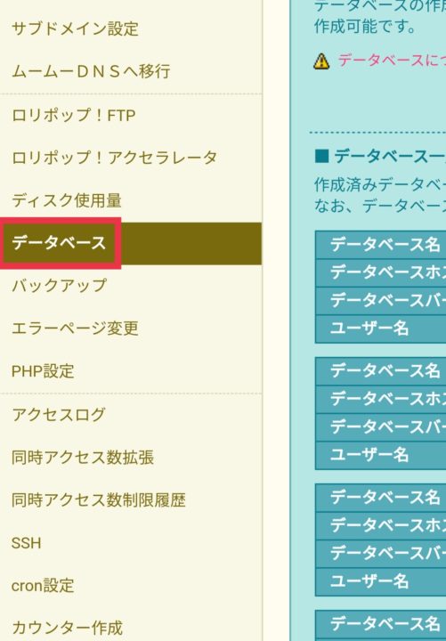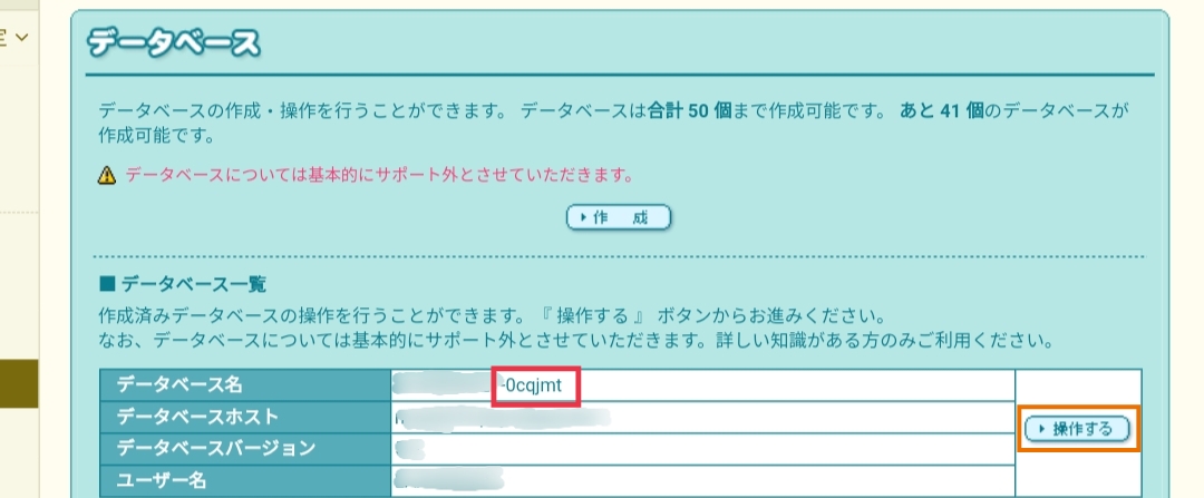 先程のデータベースの末尾のデータベースを操作するを選択します