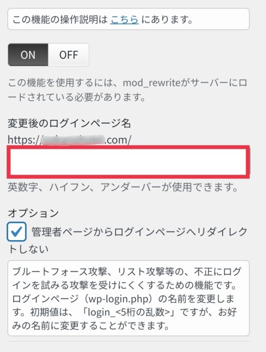 お疲れ様でした。ログインURL変更後は管理者ログインページのリンク先が変更されます。変更したリンクは覚えておくようにしましょう。